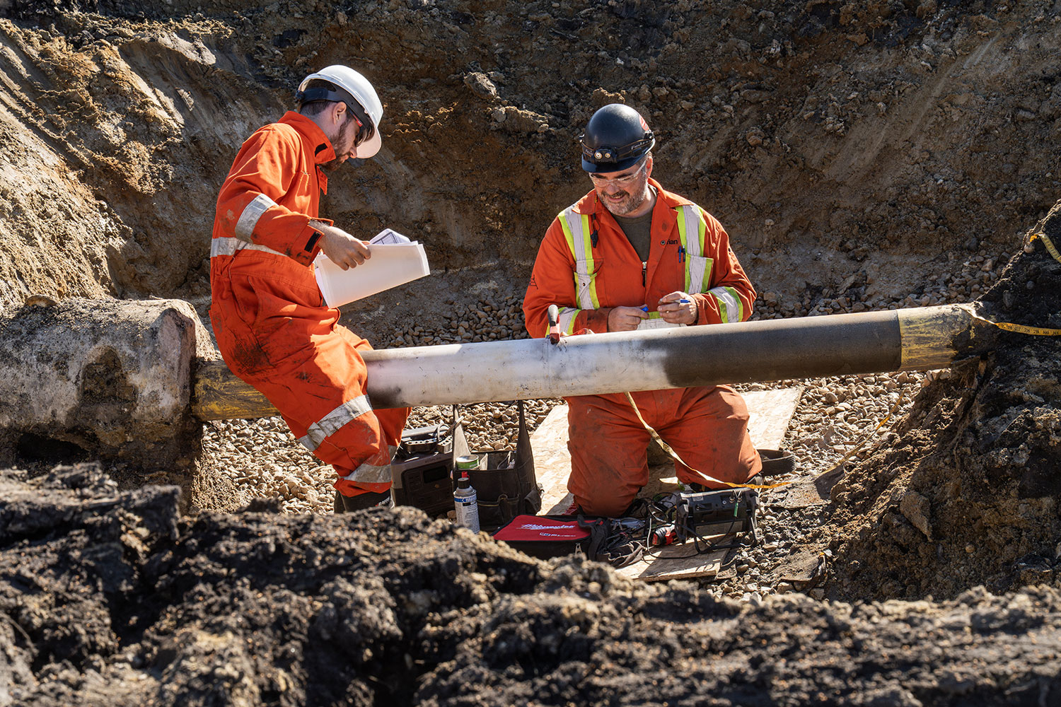 “The inline inspection tool (smart pig) is designed to detect primarily metal loss features and geometric features present on the steel pipe,” Lagassé said. “Metal loss normally comes from corrosion or manufacturing imperfections. Corrosion will naturally grow over time and is important to monitor it over time and remediate it when it becomes severe. Geometric features are mainly dents, which are heightened points of stress. Soil conditions in certain parts of the province can be quite rocky, which tends to cause dents to form, especially in areas where the land is well cultivated and heavy equipment travels over the soil and pipe.”