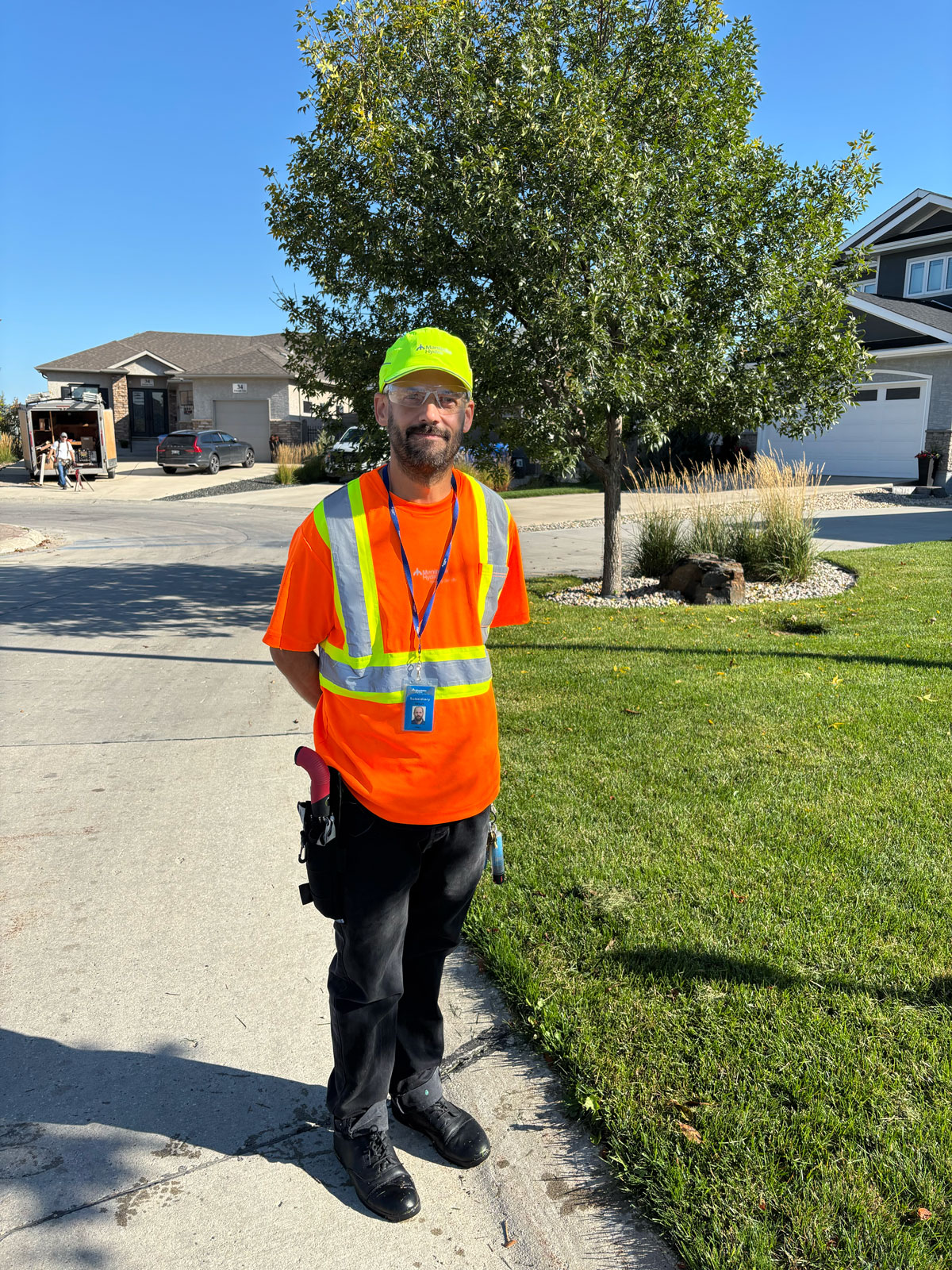 Enlarge image: Manitoba Hydro gas inspector wearing appropriate identification.